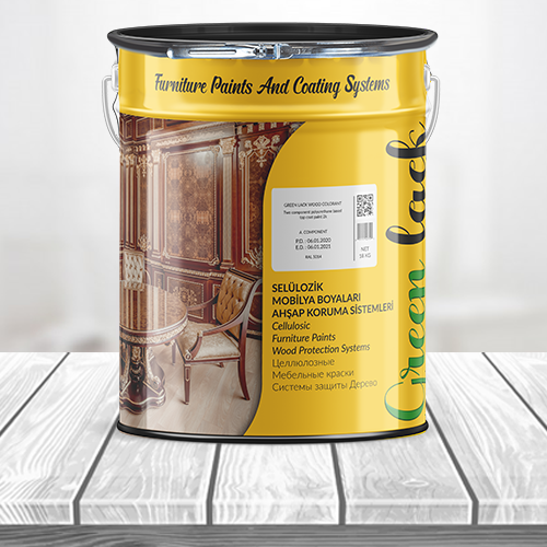 Topcoat paint that has a high covering strength and that dries quickly. Due to its special resin, it is glossy and it keeps this glossiness tor a long period. it is applied by thinning with Green Lack Cellulosic Thinner with a 60-80 % ratio and then applied as 2-3 layers, on all kinds of massive and coated surfaces of indoor furniture on top of cellulosic, polyurethane, polyester sanding sealers and primers or sanding sealer with acid hardener.