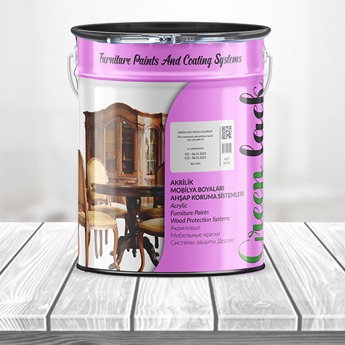 Это двухкомпонентные последны слой краски на основе акриловой смолы. Акриловая краска была разработана для использования на массивные и покрытые деревянные поверхности в декоративных работах и для мебели внутреннего интерьера. Это устойчивая к пожелтению и царапинам краска, образующая жесткую пленку, демонстрирующая превосходное распространение по поверхности и отличную адгезию. Наносится на наполнители и грунтовку на акриловой и полиуретановой основе. Период высыхания, по сравнению с алкидными полиуретановыми системами, более длительны